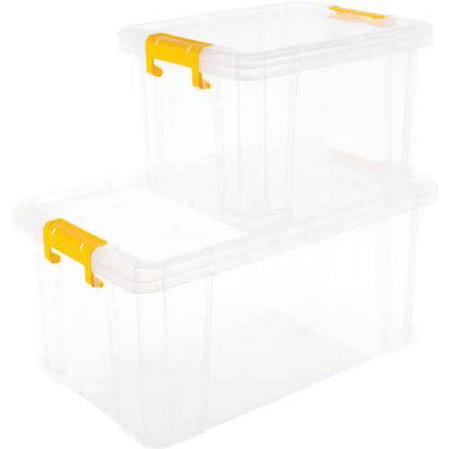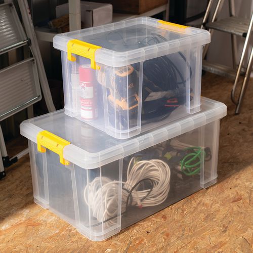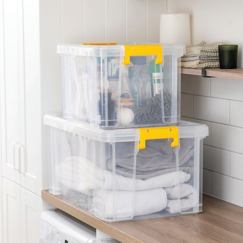 | Product Name | Strata Stackmaster Clear Plastic Storage Box, Capacity: 35 L 70 L, Nestable: yes, O/A height: 34 cm |