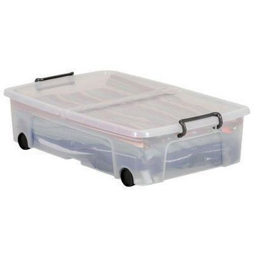 Pack of 2 slim line storage box with wheels and clip handles.