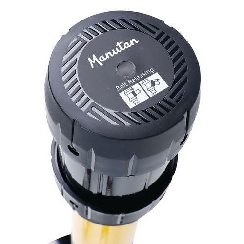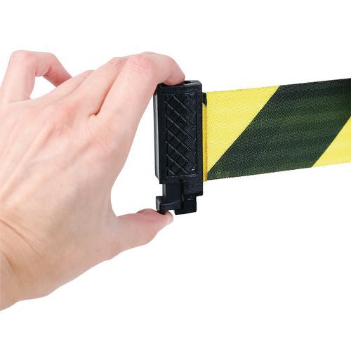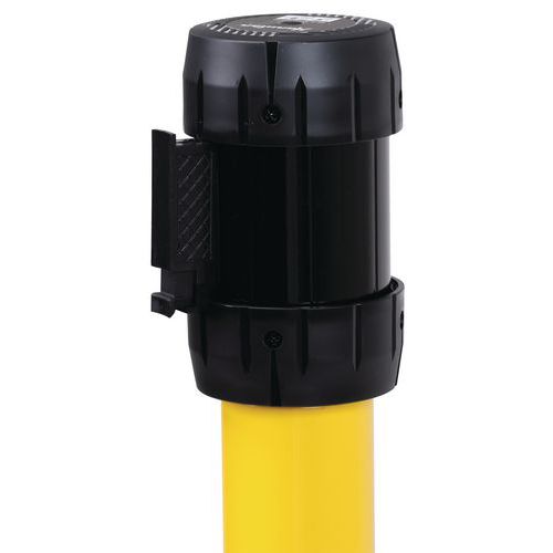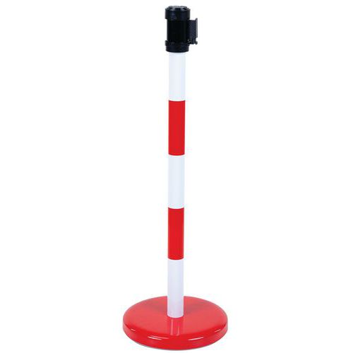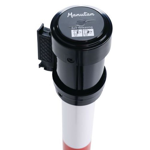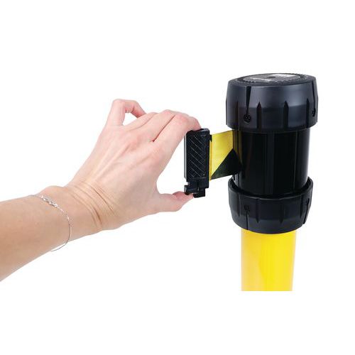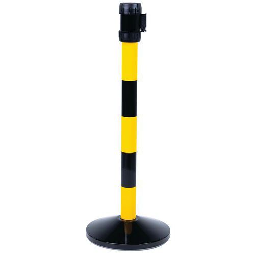 Steel post with strap - Manutan Expert Post with striped stretch strap to mark a clear barrier at a glance. This product is designed for professional use.