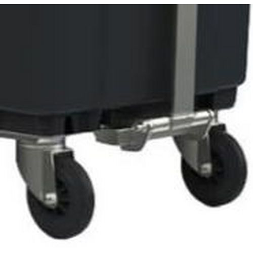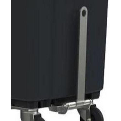 The drawbar allows you to attach up to five containers. The strong container is weather resistant due to its high-density polyethylene construction. Movement is facilitated by four swivel wheels and the double handle at the front. For safe use, the lid remains half open when you open the container. Different coloured lids for quick and easy sorting.