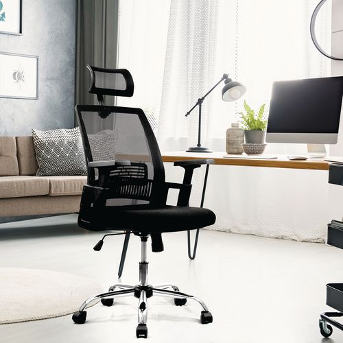 | Product Name | Sun High Back Mesh Chair With Headrest, Colour: Black, Material: Polyester, Back height: 575 mm |