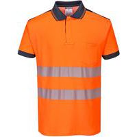 T180 PW3 High-Visibility Short Sleeve Polo Shirt, Fabric: Cotton and polyester, Colour: Blue/orange, Size: M
