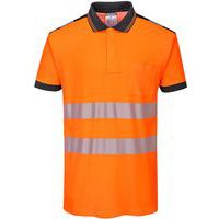 Practical orange/black PW3 high-visibility polo shirt. Designed with a comfortable fit. Extremely lightweight, breathable fabric.
