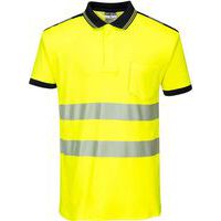 Product Name T180 PW3 High-Visibility Short Sleeve Polo Shirt, Fabric: Cotton and polyester, Colour: Black/yellow