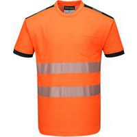 Very lightweight orange/black high-visibility PW3 T-shirt. Flexible Tex Pro segmented reflective tape for greater visibility. Designed with a comfortable fit. The fabric has UPF Factor 35+ that blocks 97% of UV rays.