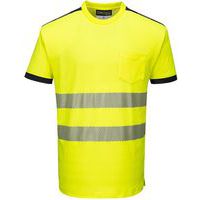 Lightweight yellow and black PW3 high-visibility T-shirt. Offers excellent freedom of movement thanks to its segmented tape design. Moisture-repellent fabric helps keep the body warm, cool and dry. Side vents for added comfort. Complies with EN ISO 20471 standard.