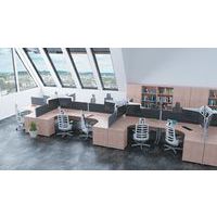 The height adjustable shelving adjusts to suit your storage needs. Attractive wood finish. 25 thick tops. Matching doors with silver handles. Secure steel to steel fittings. 2mm ABS protective edges. Lockable doors. 18mm side walls. Adjustable feet for levelling the desk on uneven floors.