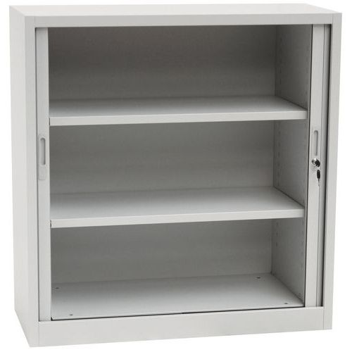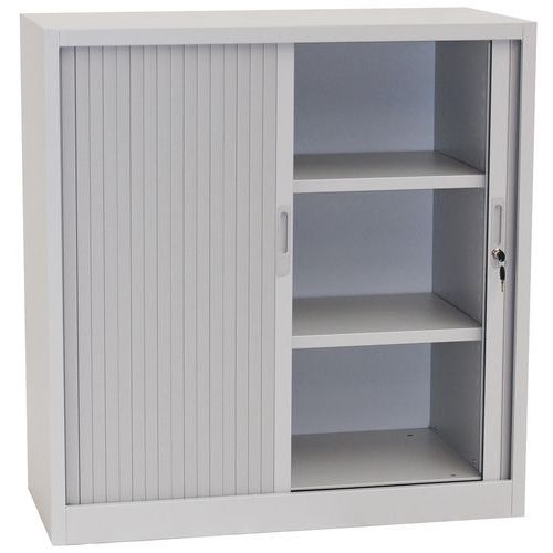 Sliding tambour door cabinets are a great way to save space as the doors do not have to swing outwards - useful in narrow spaces. The shelf can be easily adjusted and set up for hanging files. The plastic doors have a cylinder lock. Scratch-resistant epoxy finish. The lip of the cabinet is 0.7 mm thick. Please note the following safety advice: - Install the unit on a flat surface - Attach it to the wall (or a partition) using suitable fixings - Ensure that the maximum recommended load is not exceeded and take care to distribute the load evenly Customer warranty : 10 years Fire safety : M1 Max. load per shelf (kg) : 45