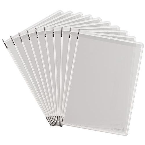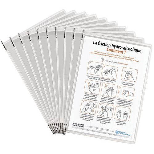 Pocket with silver ions, a natural organic product, preventing germs and bacteria. Antimicrobial pocket with top-of-pocket opening, portrait orientation. With 10 antimicrobial pivoting pockets (PVC). Metal or stainless steel pivots.