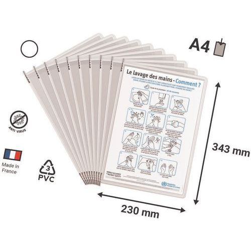 Pocket with silver ions, a natural organic product, preventing germs and bacteria. Antimicrobial pocket with top-of-pocket opening, portrait orientation. With 10 antimicrobial pivoting pockets (PVC). Metal or stainless steel pivots.