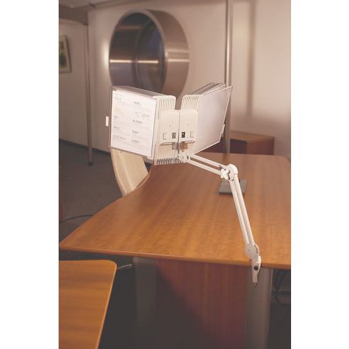- This modern articulating arm allows you to clearly organise important documents.