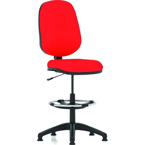 Cushioned seat pad with waterfall front. Cushioned dished seat design. Contoured backrest for added comfort. Single lever mechanism for gas lift control. Backrest angle adjustment. PCB: permanent contact backrest. The 5-star base with castors allows the chair to easily move to where it is needed.