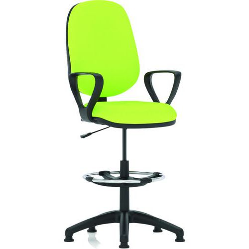 Cushioned seat pad with waterfall front. Cushioned dished seat design. Contoured backrest for added comfort. Single lever mechanism for gas lift control. Backrest angle adjustment. PCB: permanent contact backrest. The 5-star base with castors allows the chair to easily move to where it is needed.