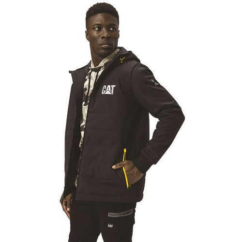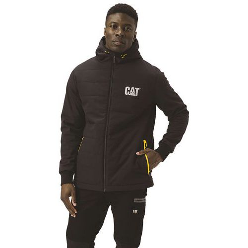 The Caterpillar Tech Hybrid jacket is designed to withstand wind and rain thanks to its waterproof fabric (up to 5000 mm) and its nylon and spandex composition with TPU laminate. The contrasting softshell sleeves with micro-fleece lining provide optimum insulation for guaranteed thermal comfort. A polyester lining provides extra insulation for lightweight, effective warmth. Equipped with multiple practical pockets: two lower pockets with secure zip fastening, an inside chest pocket and two lower inside pockets, all with hook-and-loop fastening. Three-piece adjustable hood and drawstring hem for a custom fit and extra protection from the elements. The Caterpillar Tech Hybrid jacket is designed to withstand wind and rain thanks to its waterproof fabric (up to 5000 mm) and its nylon and spandex composition with TPU laminate. The contrasting softshell sleeves with micro-fleece lining provide optimum insulation for guaranteed thermal comfort. A polyester lining provides extra insulation for