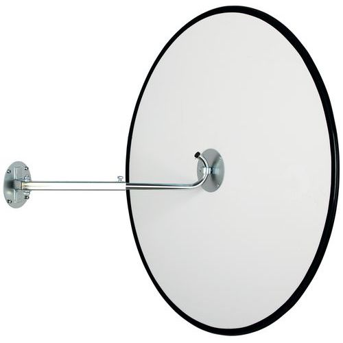 Universal surveillance mirror, ideal for industrial areas, car park exits etc. Made of acrylic, which offers improved resistance to impact compared to glass. Excellent image return without distortion thanks to metallisation applied to the rear. Impact resistant according to DIN ISO 179-1. TÜV certification.