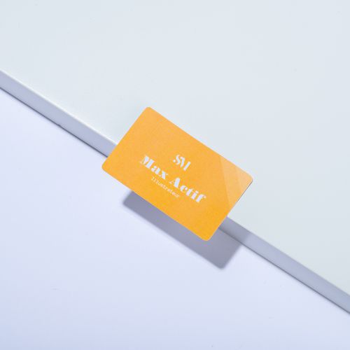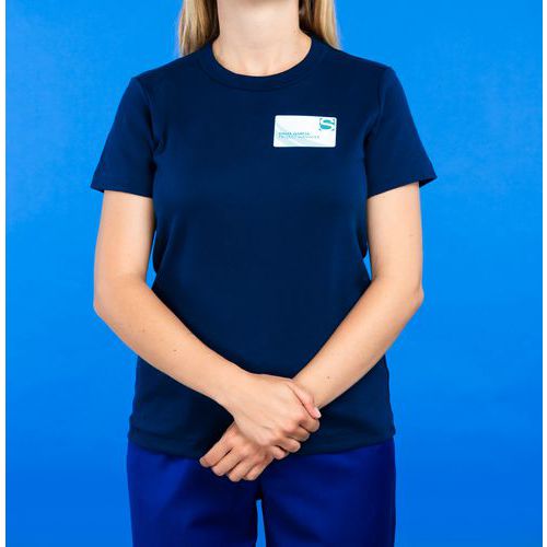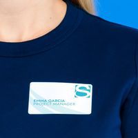 PVC-free self-adhesive badge for laser printing.
