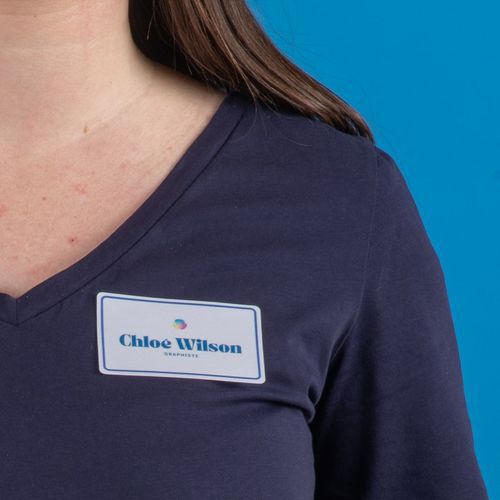 | Product Name | Textile self-adhesive badge with coloured border, Colour: Blue/white, Type of fixings: Adhesive |