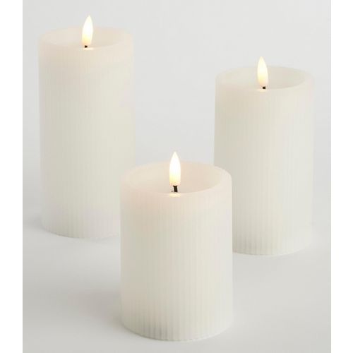 | Product Name | Three-piece set of white LED pillar candles with battery-operated timer, Diameter Ø: 7.5 cm, Colour: White |