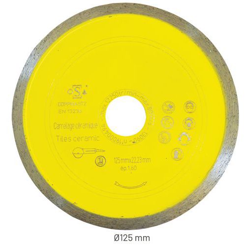 | Product Name | Tile cutting disc, Bore Ø: 22.23 mm, Ø: 125 mm, For material: Tiles, Use: Cut |