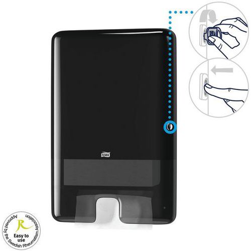 Tork interlocked hand towel dispenser, Colour: Black, Height: 444 mm, Width: 302 mm, Depth: 102 mm