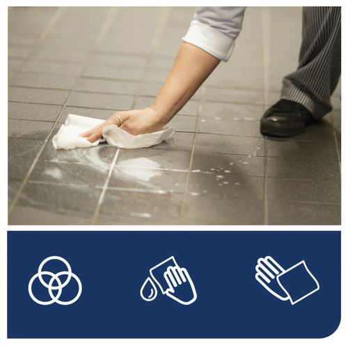 Tork Plus M2 maxi multipurpose wiping paper roll. Ergonomic cardboard packaging that's easy to transport, open and dispose of. Absorbent hand towel resistant to damp environments. A hygienic way to clean hands that's pleasant to the touch. EU Ecolabel certified and suitable for limited contact with food.