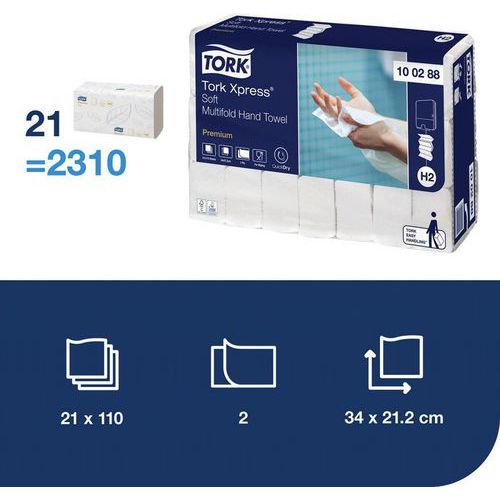 | Product Name | Premium H2 multifold hand towel, Colour: White, Type of product: Soft folded hand towel, Sheet width: 21.2 cm |