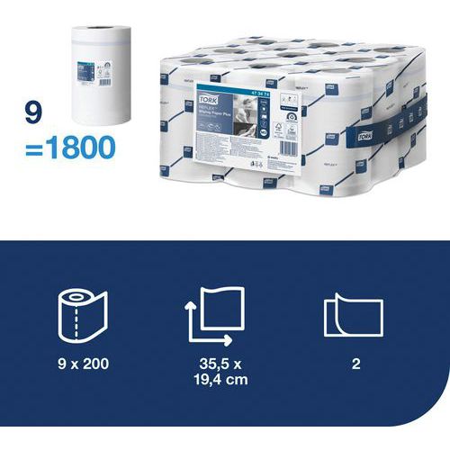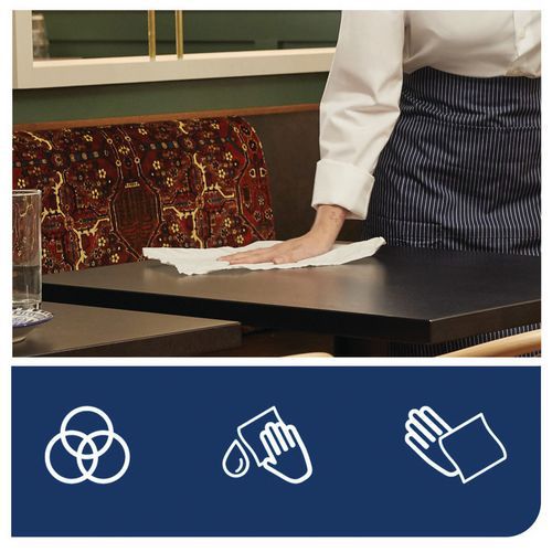 Strong and ultra-absorbent wiping paper roll with QuickDry technology. Two thicknesses. Pre-cut sheets.
