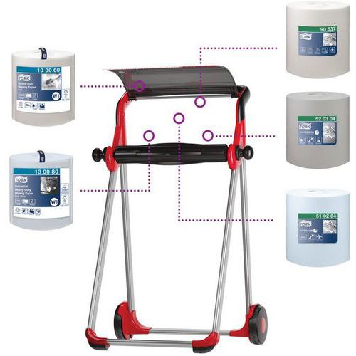 Tork- W1 freestanding dispenser, Diameter Ø: 71 mm, Colour: Red, Height: 100 cm, Width: 60.5 cm
