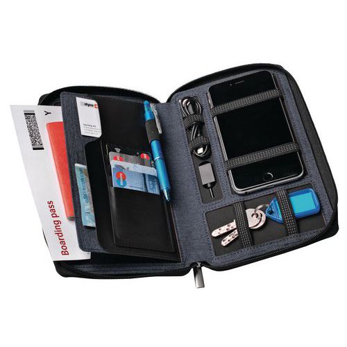 Travel wallet with external battery, Colour: Blue, Width: 14 cm, Height: 2.8 cm, Depth: 24.2 cm