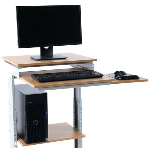- The pull-out keyboard and mouse support (50-60 cm) is height adjustable, offering your a good working position.