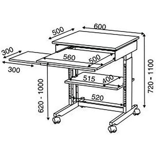 The printer and PC tower shelves can be adjusted and modified to the desired height (72-110 cm).