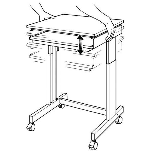 The pull-out keyboard and mouse support (50-60 cm) is height adjustable, offering your a good working position.