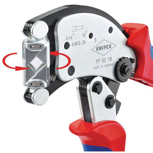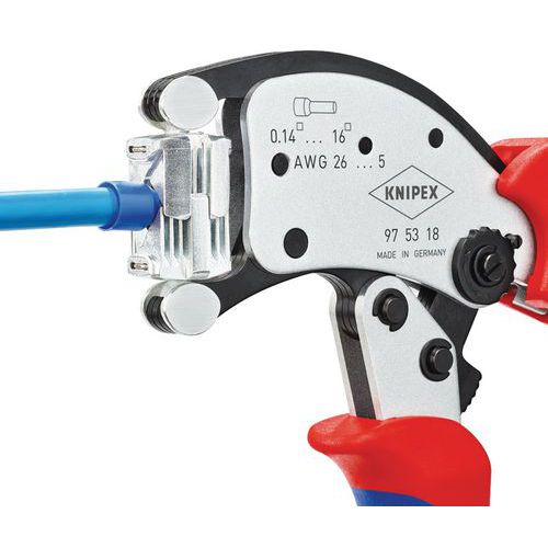 - Exceptionally flexible crimping tool: connectors can be inserted in all positions.