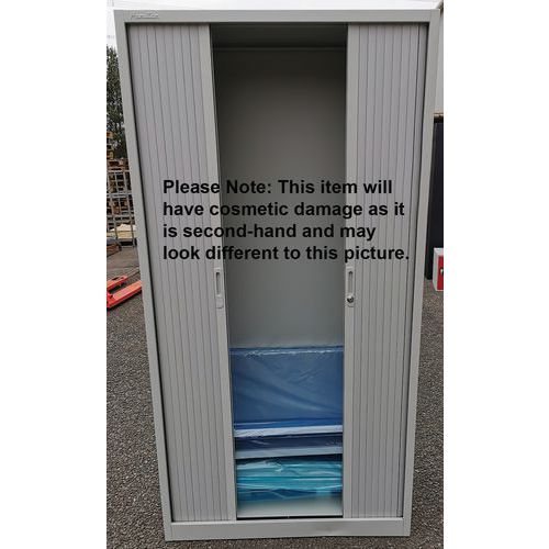 Used Grey Tambour Cupboard - 4 Shelves - HxWxD 1950x1000x450mm