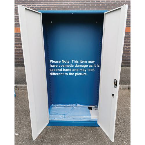 Used Metal Storage Cupboard - 4 Shelf Grey/Blue 1950x1000x450mm