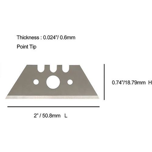 | Product Name | Utility Knife Pointed Tip Blade Accessories, Material: Steel, Blade width: 18.79 mm, Blade length: 50.8 mm |