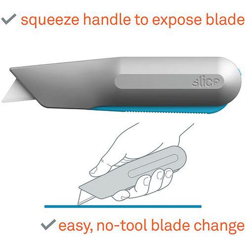 - Just squeeze the handle to expose the blade.