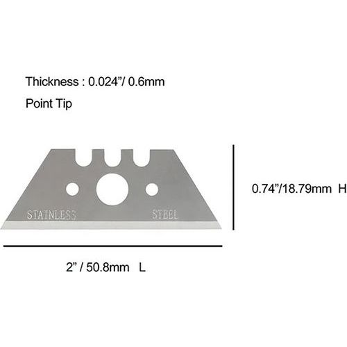 | Product Name | Utility Knife Stainless Steel Pointed Tip Blades, Material: Stainless steel, Blade width: 18.79 mm |