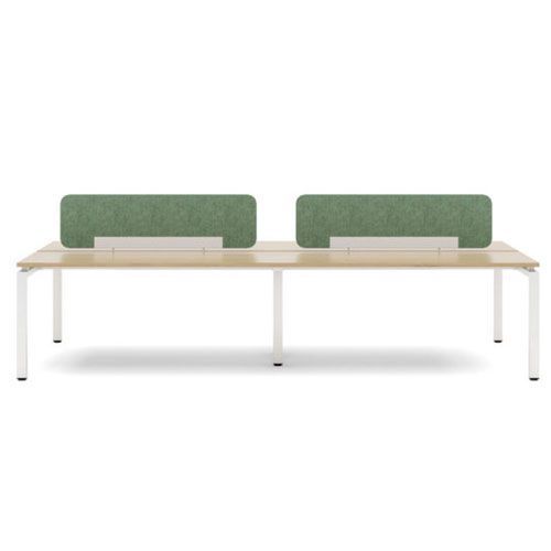 - Silver metal leg frames designed to combine to create large, space-efficient working areas.