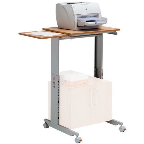 - Enlarge your mobile workstation with a small cupboard that can be inserted between the two pillars.