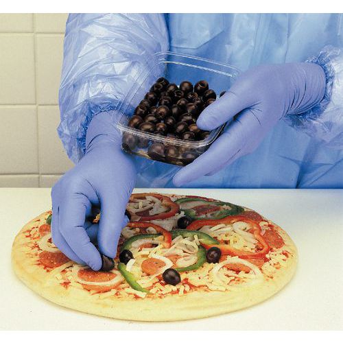 - VersaTouch® 92-465 dark blue nitrile gloves are food handling-compliant and well suited for a wide range of food processing tasks.