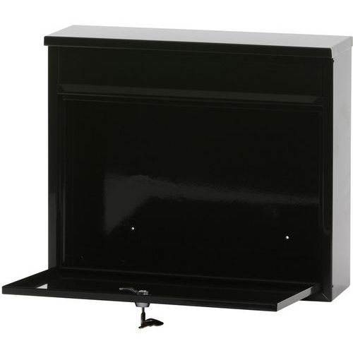 - Wall-mounted metal letterbox with flap and a lockable front access door. Opening: 32 x 4 cm.