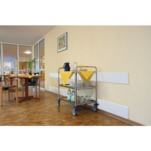 Easily cleaned and resistant to conventional detergents. Dimensionally stable and frost proof to -30 °C. Easily cut or mitred with standard tools. Colour coordinated blanking plugs for pre-drilled screw holes. Simple to install with 6mm counter-sunk fasteners (not supplied). Suitable for installation in rooms and hallways, public buildings, hospitals, nursing homes, waiting rooms, surgeries, industrial premises, workshops etcetera. Made in Germany