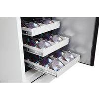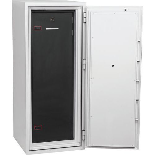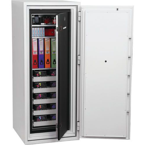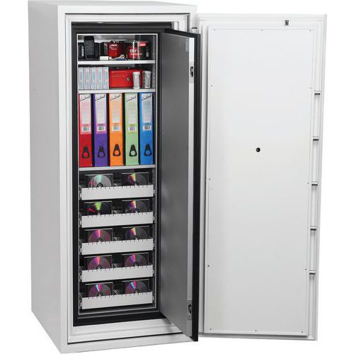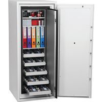 Tested to Swedish NT Fire 017-120dis standard, providing 120 minutes of fire protection for computer backup tapes. Twin water-resistant seals provide an airtight, water-resistant inner compartment for your computer media. Choose between a quality key lock supplied with two keys, an LED electronic lock with programable hidden/scrambled code or a touchscreen keypad & fingerprint LED lock with an internal alarm, dual control, and hidden/scrambled code that can be programmed to recognise up to 128 fingerprints. Fire and impact tested from 9.1 metres for resistance. To the impact of falling through the burning floors of a building. Each unit comes complete with height-adjustable shelves and pull-out media trays. Finished in a high-quality scratch-resistant white paint RAL9003. Maintain GDPR Compliance at home or in the office by keeping your company’s vital and important records secure and protected. All cupboards of 690mm width are fitted with automatic slam-shut locking.