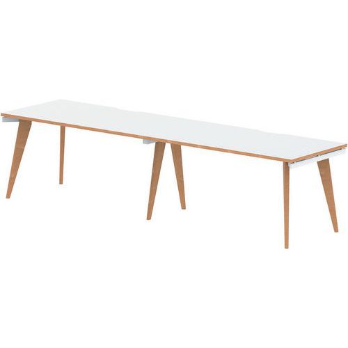 Adjustable feet for levelling the desk on uneven floors. Floating fixed desk top. Scalloped back edge for easy cable control. 2mm protective ABS edge. 25mm thick top.