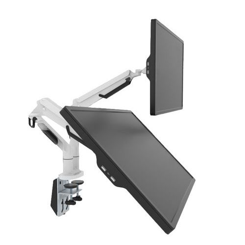 | Product Name | White dual monitor arm with gas spring, Max. load: 9 kg, Colour: White, Min. load: 2 kg, Min. height: 5 cm |