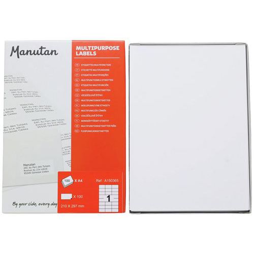 White Label Printer Stickers - Multipurpose A4 or A5 Sheets - Manutan Expert
