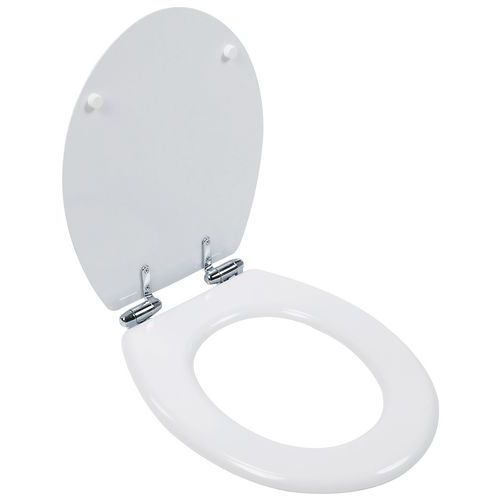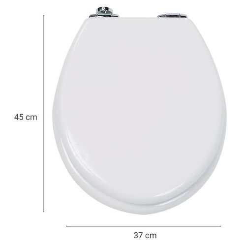 White MDF toilet seat, Lengths: 45 cm, Width: 37 cm, Height: 6 cm, Materials: MDF, Colour: White