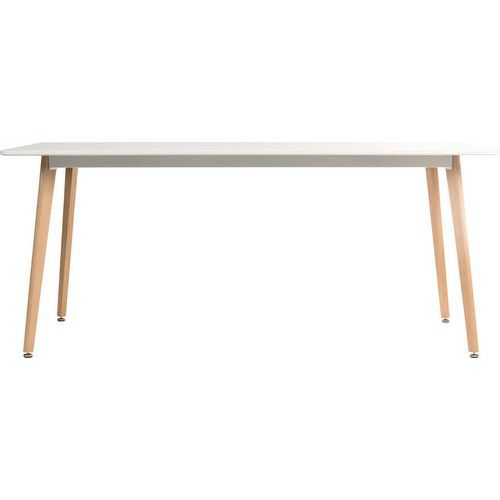White Rectangular Canteen/Breakout Room Table - Beech Legs - Skandi