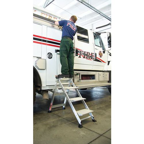 The step folds for easy storage.